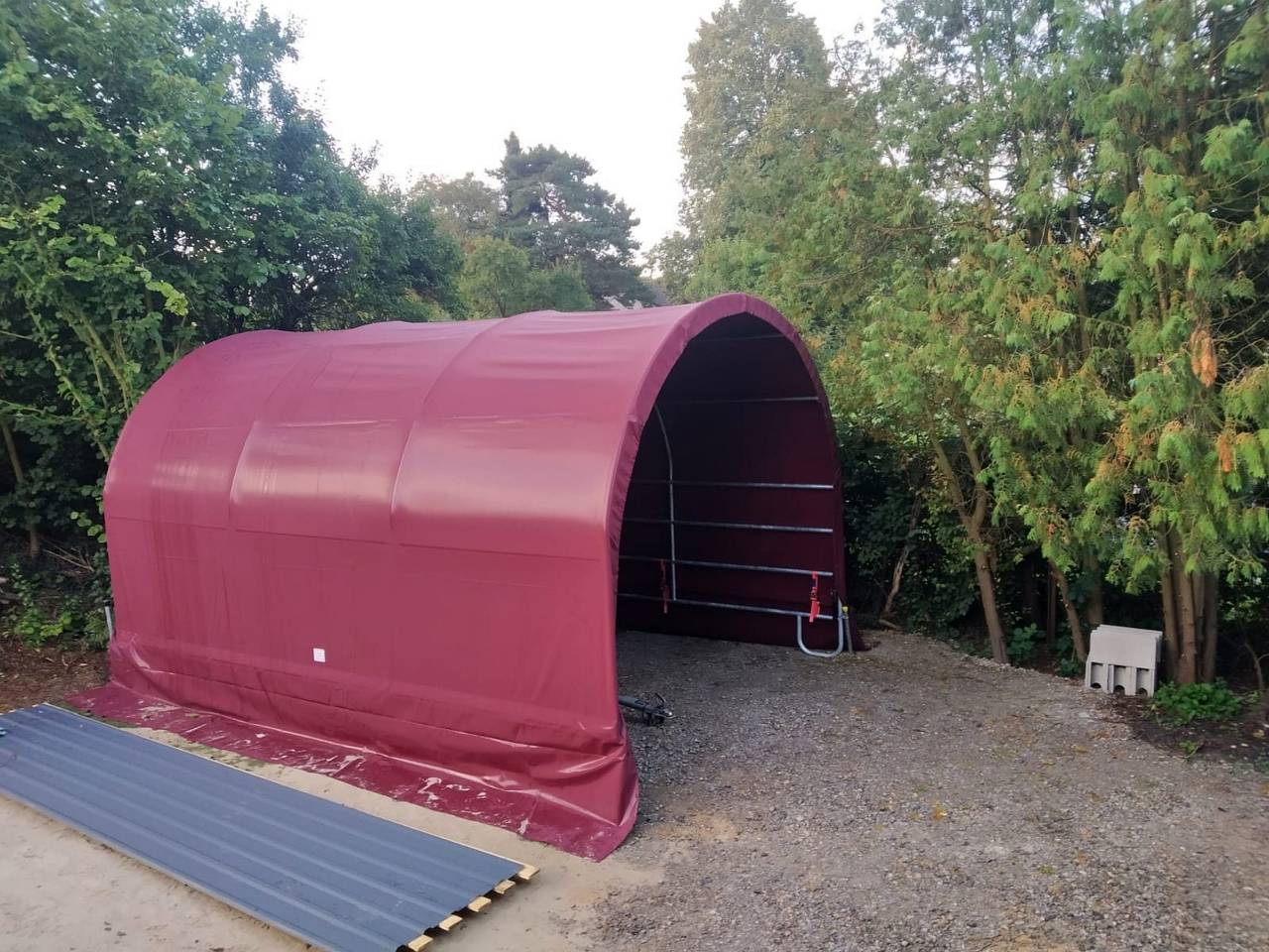 Mobiler Unterstand mit Dacheindeckung Standard inkl. Sturmsicherung 4m x 4m H 3,57m