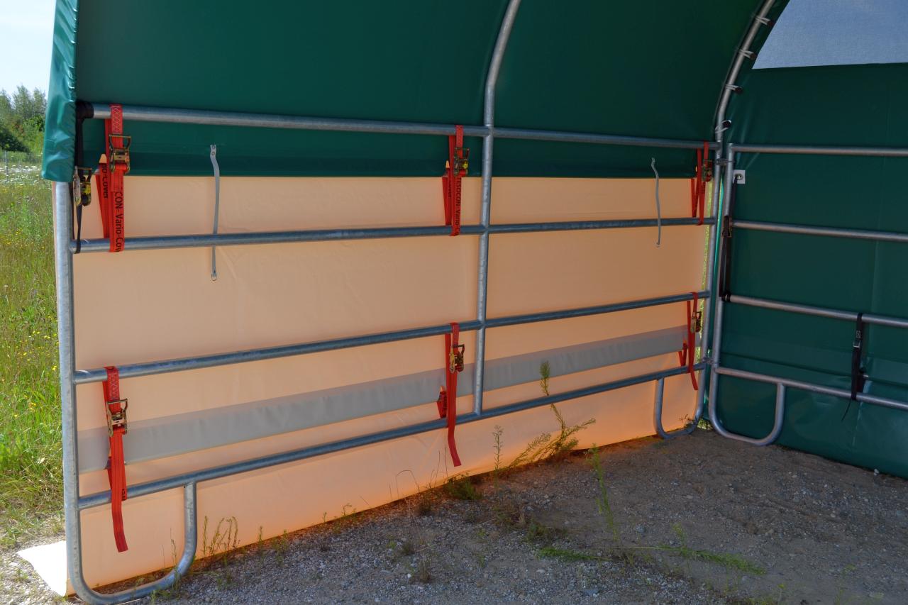 - Verschiedene Giebelwände (PVC-Gewebemembran, Windschutznetz)